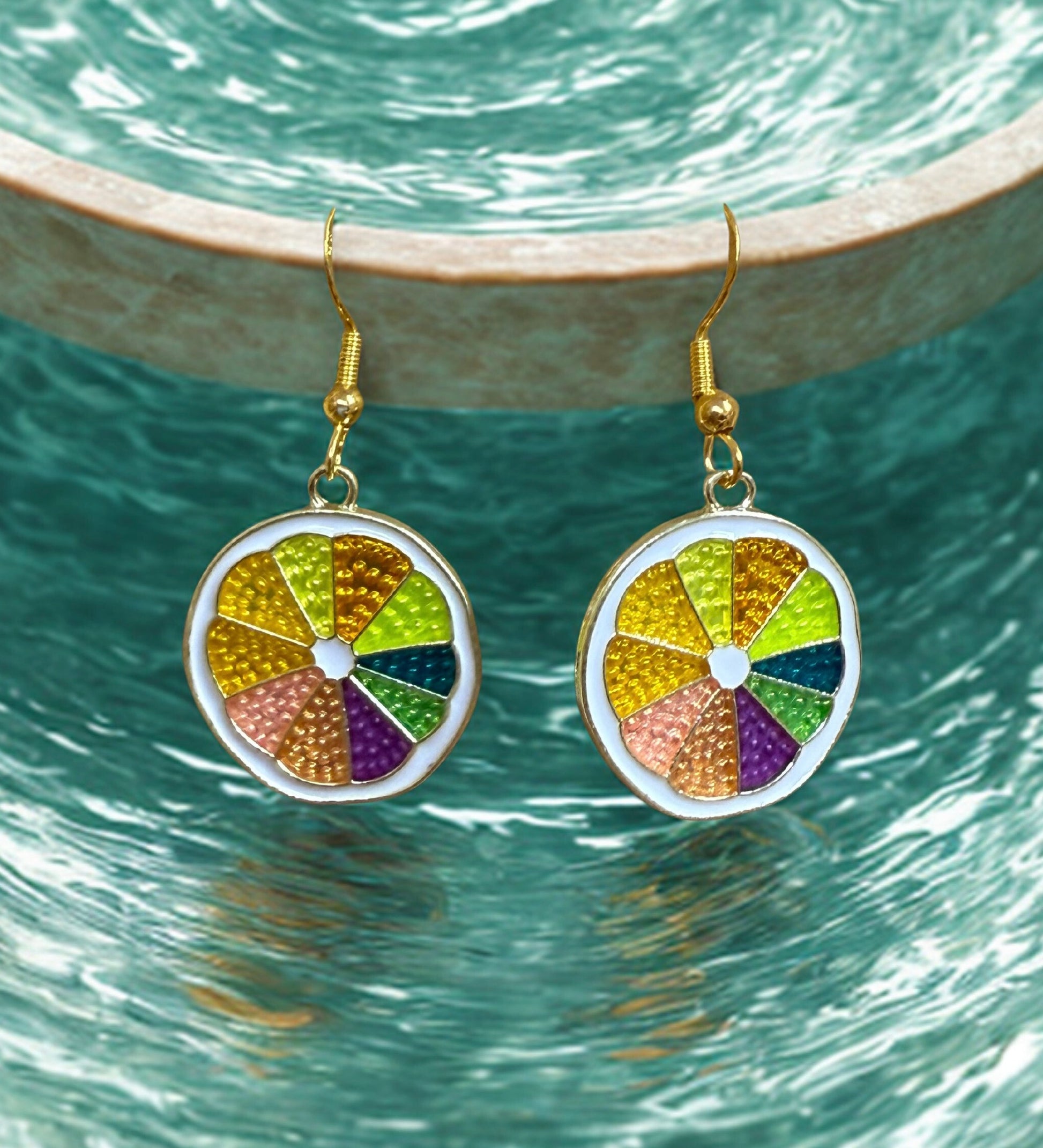 Fruit colored in gold plated setting. These earrings are the perfect pop of fun for a summer day out! Whether you’re brunching with friends or strolling the boardwalk, they’ll complete your look — and trust us, everyone will be asking where you got them!
